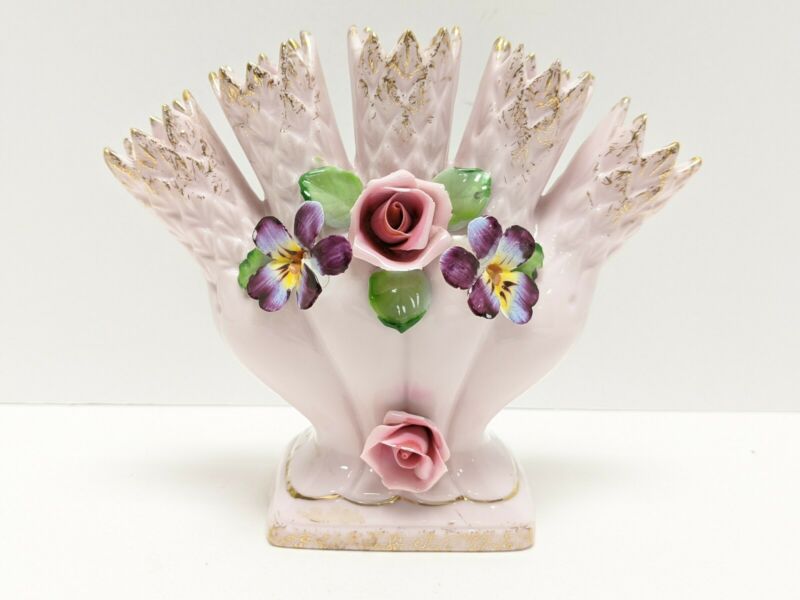 Title (ebay affiliate link): VINTAGE LEFTON HAND PAINTED GOLD TRIM CAPODIMONTE FIVE FINGER CERAMIC BUD VASE