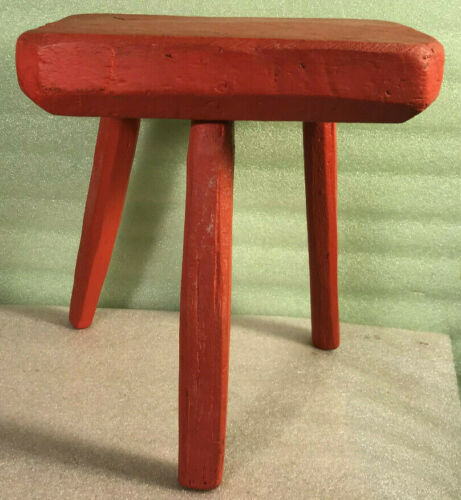 Title (ebay affiliate link): Vintage Primitive Rustic Orange Painted Wood 3 Leg Milking Stool