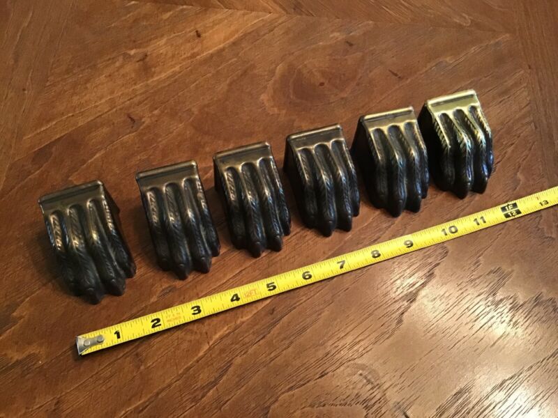 Lot 6 Large Antique Claw Table Leg Feet Caps Foot Hardware Cast Brass Paws Heavy