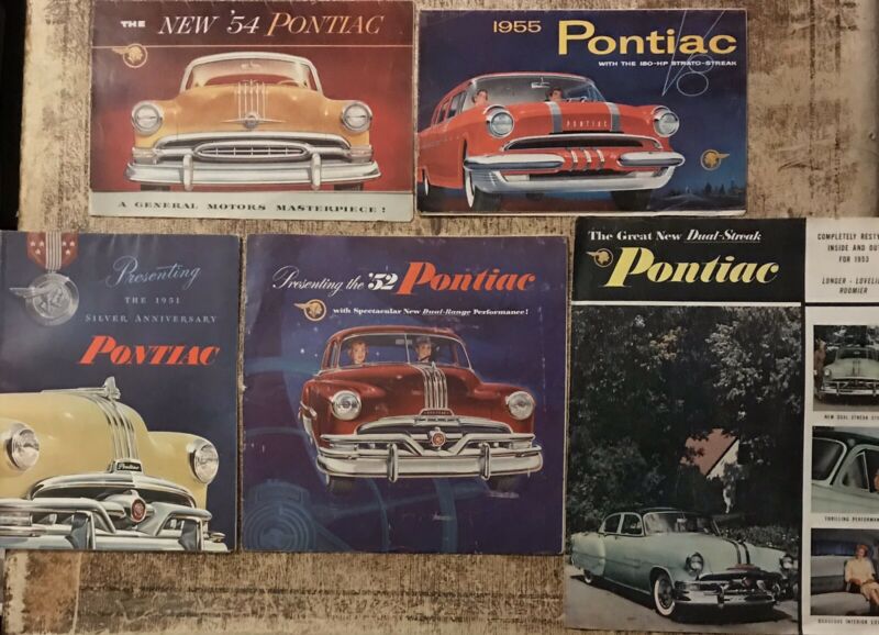Title (ebay affiliate link): 5 Vintage 1951-1955 Pontiac Car Advertising Foldout Brochures & Booklet