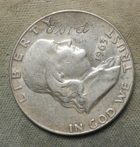 Title (ebay affiliate link): Counterstamp: FORD c/s in script on a 1963D Franklin 50c, Brunk F-310