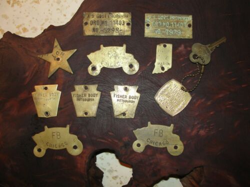 *****12 - PIECE FISHER BODY BRASS TOOL TAG , KEY AND KEY FOR CHEVORLET*****