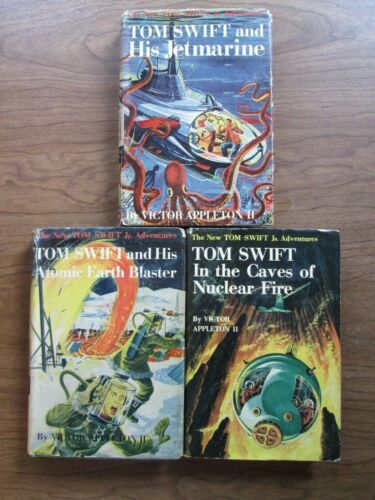 Title (ebay affiliate link): Lot of 3 vintage TOM SWIFT childrens books HBDJ Caves of Nuclear Fire 1st ed?