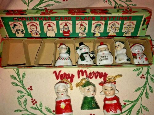 Title (ebay affiliate link): Vintage Porcelain Christmas Card Place Setting Figure Box Japan + bell ornaments