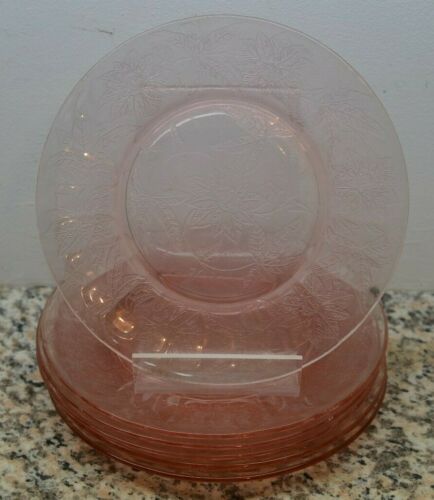 Title (ebay affiliate link): 6 Vintage Pink Depression 8" Plates FLORAL or POINSETTIA Jeanette Glass Co