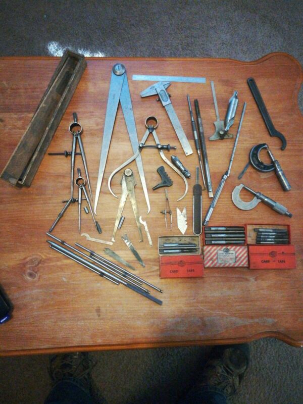 Lot of vintage machinist tools Starrett slocomb Union arhol card