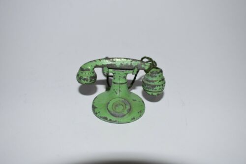 Vintage Tootsietoy 1930s Doll House Telephone in Green Cast Metal *LOOK*