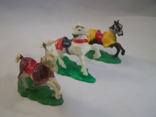 Lot of 3 Marx HO Medieval Knights horses in hand painted hard plastic LOOK !