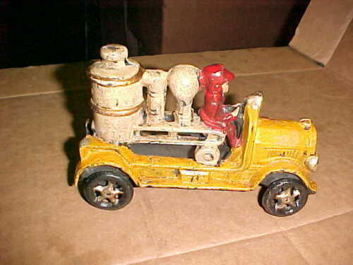 VINTAGE CAST IRON TOY FIRETRUCK 6 1/2 INCHES LONG