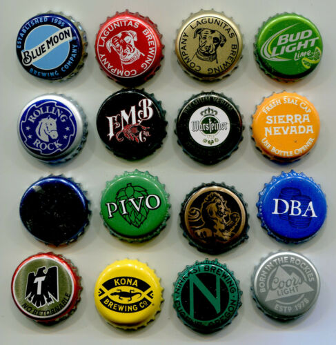 Title (ebay affiliate link): LOT OF 16 DIFFERENT USED BEER CAPS CROWNS PLASTIC VINYL LINED