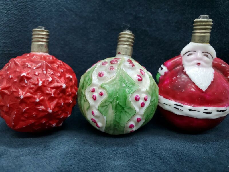 Title (ebay affiliate link): WorkingLOT (3) VINTAGE CHRISTMAS ROUND LIGHT BULBS MILK GLASS HOLLY SANTA STAR