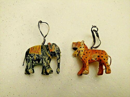 Vintage / Antique Composite Christmas Ornaments Leopard Elephant