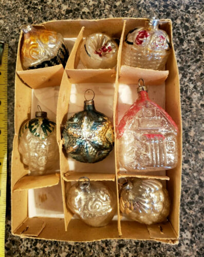 Title (ebay affiliate link): 8 Antique Mercury Glass German? Feather Tree Ornaments in Box