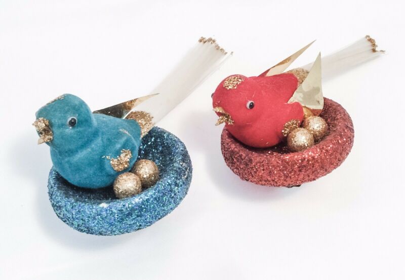 Title (ebay affiliate link): Vintage Christma Ornaments Clip On Birds Spun Glass Flocked Glitter