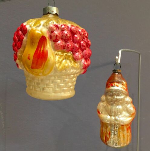 Title (ebay affiliate link): 2 Antique FRUIT BASKET and Santa Vintage Glass Christmas Ornaments
