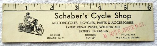 VINTAGE SCHABER''S CYCLE SHOP ITHACA, N.Y. BLOTTER 6" X 1 1/2"