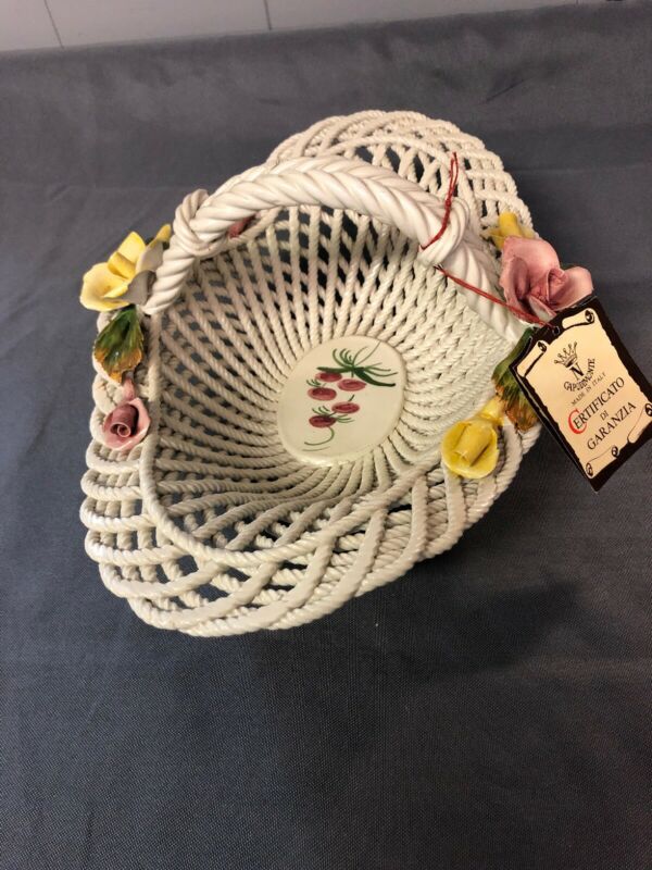 Title (ebay affiliate link): Vintage Capodimonte Porcelain Centerpiece Large Woven Basket w/Roses