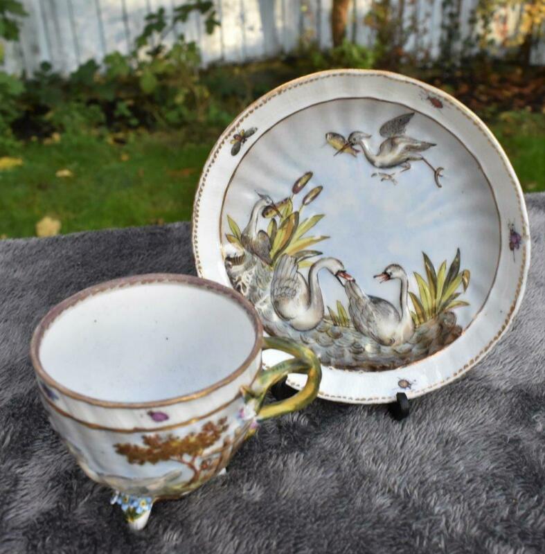 Title (ebay affiliate link): FABULOUS ANTIQUE 19thC CAPODIMONTE NAPLES CUP AND SAUCER - DUCKS ON POND