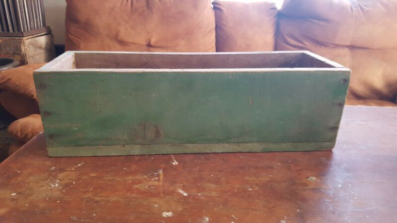 Antique vintage primitive wood box old dry apple green paint AAFA