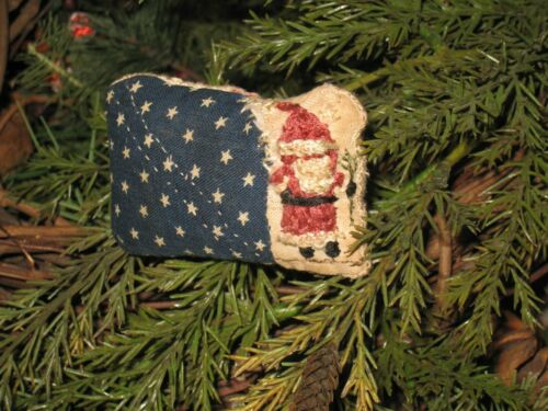 Primitive tiny Sampler Pillow~Santa Holds Pine Tree~ Early Quilt~Folk Art ~X-MAS