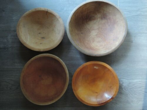 Title (ebay affiliate link): 4 Wooden DOUGH BOWLS 1 MUNISING WOOD Primitive Rustic Country Vintage Out Round