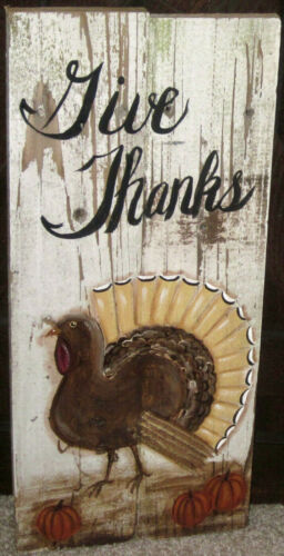 Title (ebay affiliate link): *~*PRIMITIVE*~* HP FOLK ART PRIM TURKEY * GIVE THANKS *~* RECLAIMED WOOD