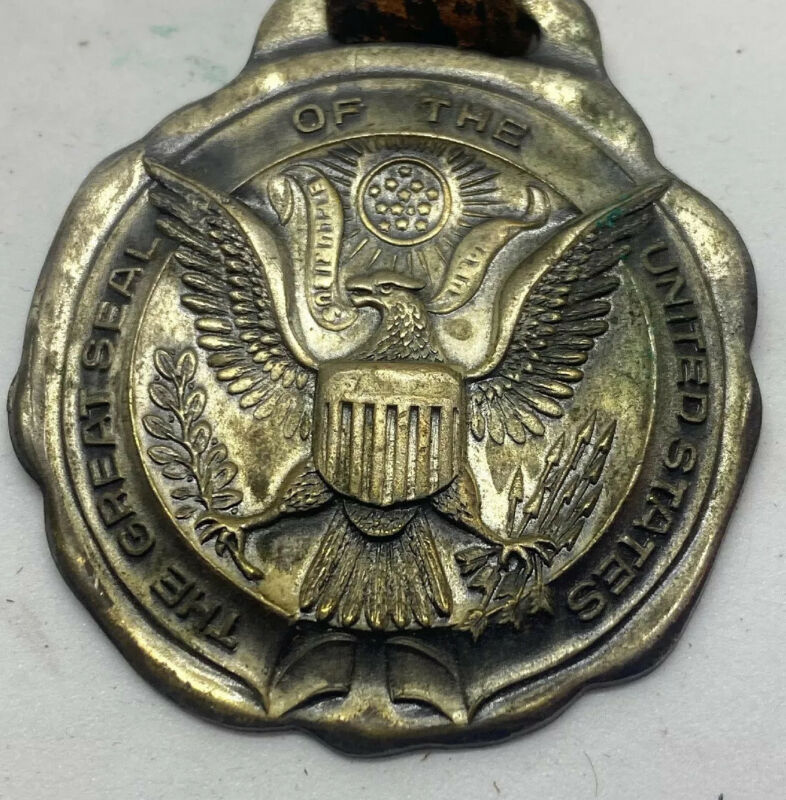 Title (ebay affiliate link): Antique Collectible The Great Seal of the United States Pocket Watch Fob Bronze