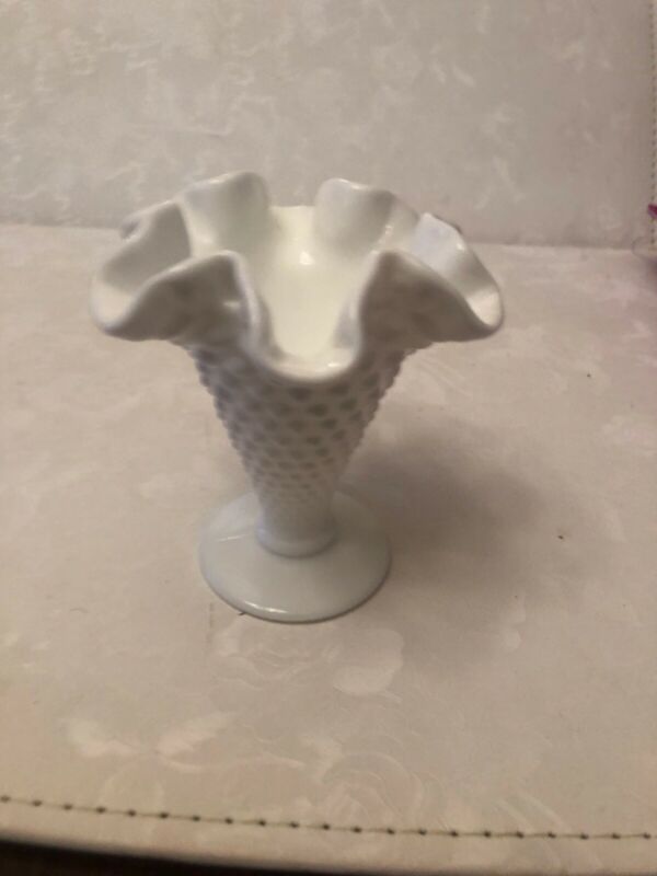 Fenton Small White Milk Glass Hobnail Vase 3" Vintage