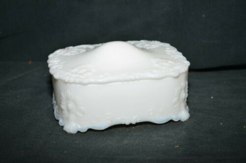 Vintage White Milk Glass - Covered Rectangle Dish -