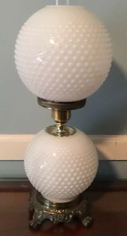 Vintage Hobnail Milk Glass Electric Hurricane Lamp