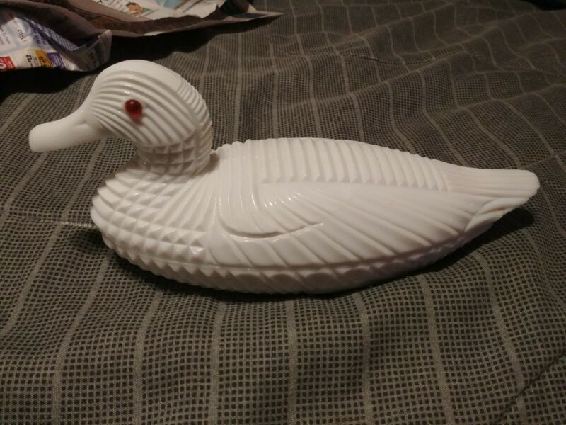 Title (ebay affiliate link): Vintage. Vallersthal Milk Glass red Eyed Duck Covered Candy Dish