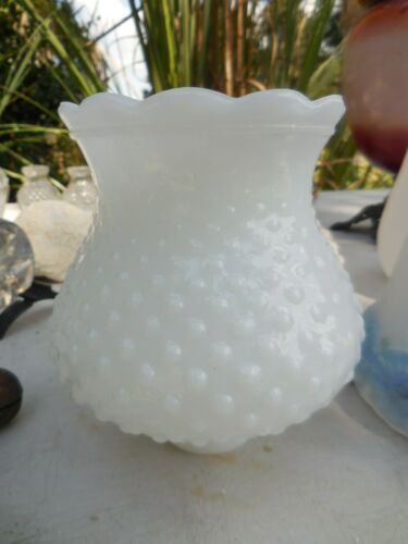 Title (ebay affiliate link): Set of 3 Milk Glass Hobnail Hurricane Lamp Shade Scalloped Globe 1 5/8"