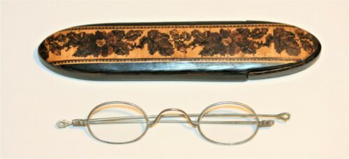 Title (ebay affiliate link): TUNBRIDGE WARE TREEN SPECTACLES CASE ETUI + SILVER EYEGLASSES, GOOD COND.