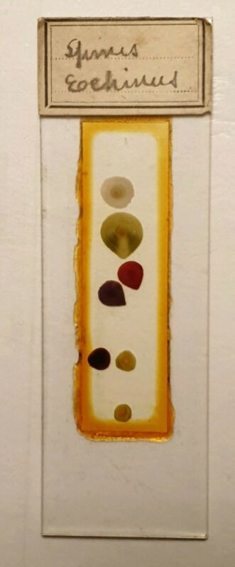 Title (ebay affiliate link): VERY FINE ANTIQUE MICROSCOPE SLIDE "SPINES OF ECHINUS"