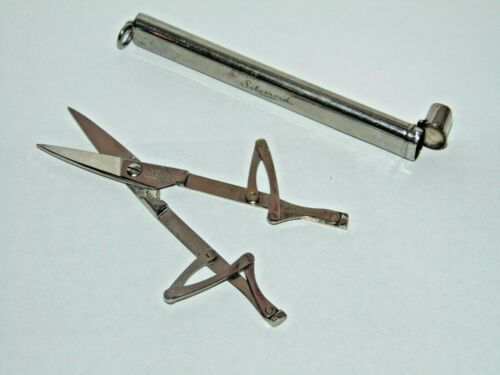VINTAGE J.Y COWLISHAW SHEFFIELD PATENT FOLDING SCISSORS SILVEROID MONO NICKEL