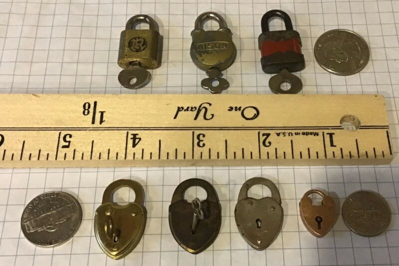 Title (ebay affiliate link): Group of 7 Antique Miniature Padlock Rose Gold Heart Eagle Lock w/ keys