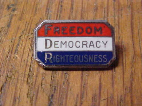 Vintage Sterling Roosevelt FDR Political Pin Freedom Democracy Righteousness