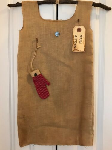 Title (ebay affiliate link): Primitive Hanging Dress Christmas Winter Homespun Mitten Stamped Tag Folk Art