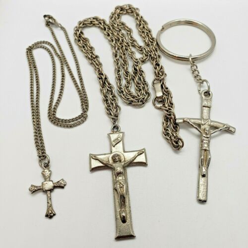 Title (ebay affiliate link): Lot of 3 Vintage Religious Cross Pendant Necklace Key Chain Keychain Silver Tone