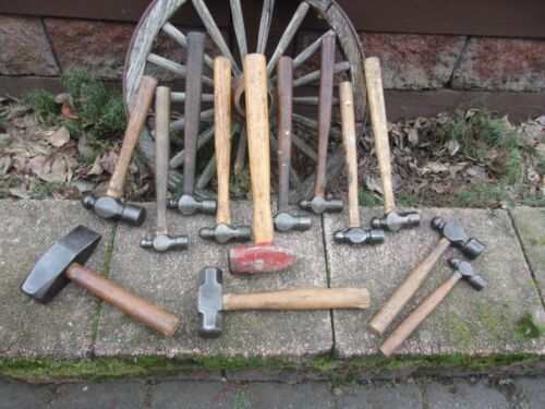 Title (ebay affiliate link): 13 VINTAGE BLACKSMITH HAMMERS{10 BALL PEENS / 2 CROSS PEENS / 1 SLEDGE }