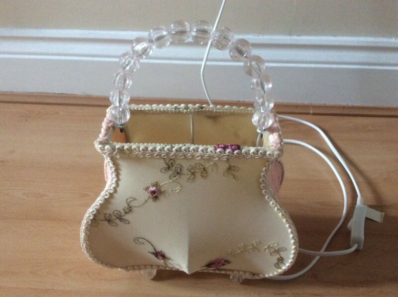 Table lamp in shape of handbag, pink & cream