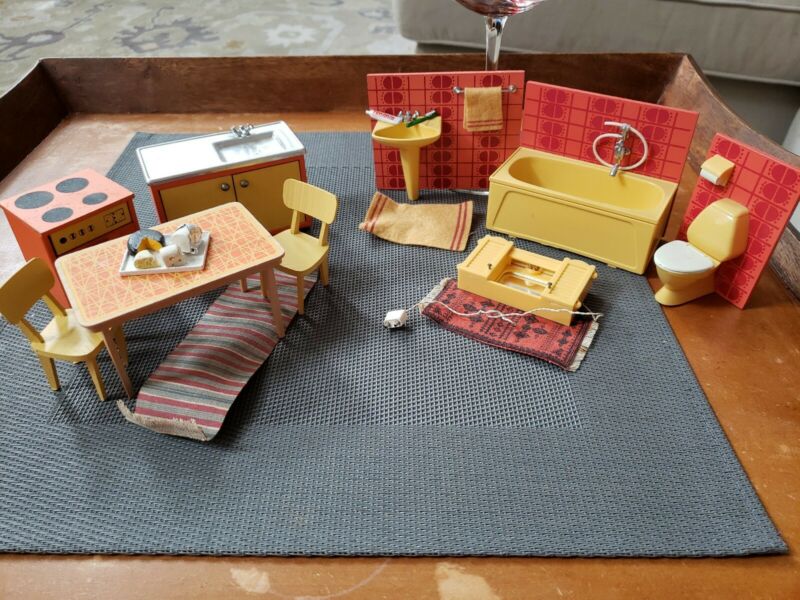 Title (ebay affiliate link): Vintage 1974 LUNDBY SWEDISH KITCHEN & Bath DOLL DOLLHOUSE FURNITURE