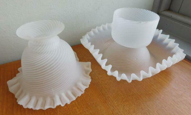 Title (ebay affiliate link): Rare Victorian Hand Blown Glass Fairy Lamp Base & Shade Opalescent Rim 1890s
