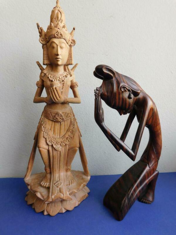 Title (ebay affiliate link): AUC3 2 Vintage Balinese Hand Carved Wooden Statues Goddess & Praying Figure
