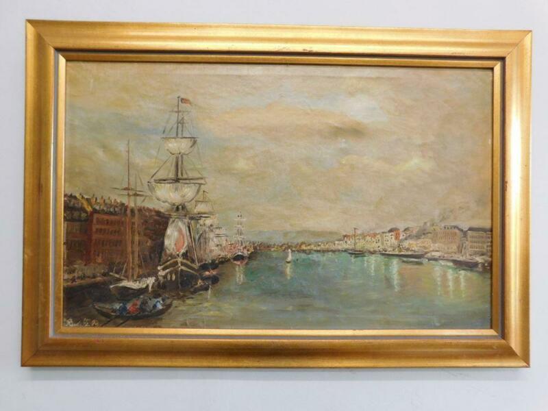 Quality Impressionist Oil Painting Port of Rouen France Gilt Frame