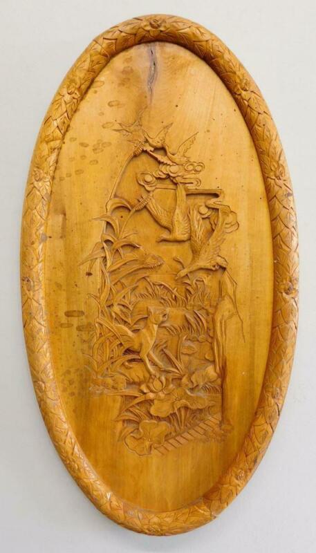 Beautiful Antique Oriental Chinese? Carved Wooden Wall Panel 1900s
