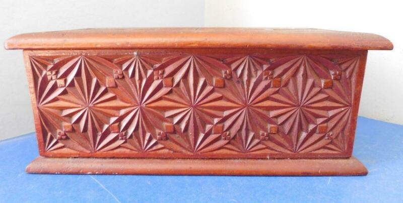 Beautiful Antique Australian Crisply Chip Carved Wooden Box 1900s