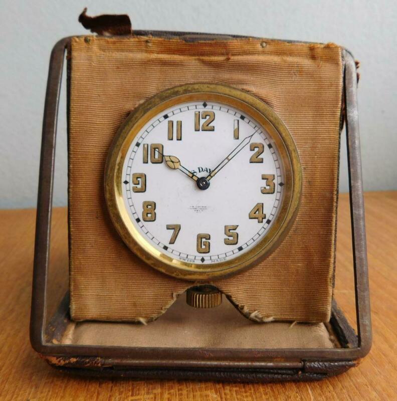 Title (ebay affiliate link): Antique Leather Clad 8 Day Swiss Travel Clock Drummonds Jewellers Melbourne 1900