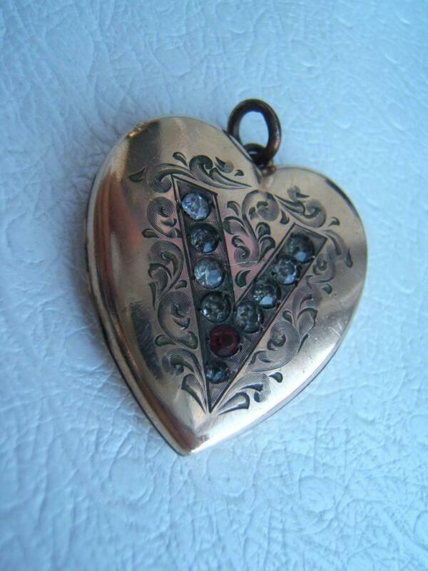 Title (ebay affiliate link): ANTIQUE G.F. HEART & RHNESTONE ETCHED LARGE LOCKET PENDANT 1 1/4"