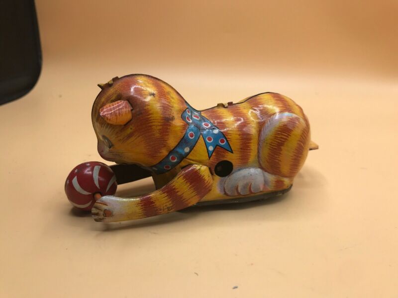Tin Litho Japan Wind Up Cat w Ball Toy